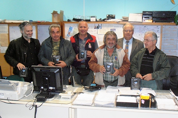 Στις φωτογραφίες, ο κ. Ξανθόςσυγχαίρει τον επιβλέποντα του έργου της Τηλεμέτρησης, αρχιτεχνίτη Ιωάννη Κωνσταντινίδη, ακολουθεί στιγμιότυπο από την εκπαίδευση στελεχών για την εφαρμογή του Ηλεκτρονικού Πρωτοκόλλου και διακρίνονται οι Ξενοφών Πέππας και Χρήστος Καραθόδωρος και τέλος στιγμιότυπο από την παραλαβή των GARMIN OREGON, των οποίων τον συντονιστικό ρόλο έχει ο πρώτος εξ αριστερών μηχανικός Αθ. Σιδηρόπουλος (Προϊστάμενος Εκμετάλλευσης Δικτύου) και πλαισιώνεται από τους Κ. Χατζόπουλο, Α. Τρούτσκο, Η. Μιχαηλίδη και τον εργοδηγό Κ. Αγκαθίδη.