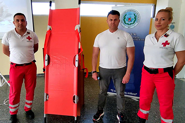 Την δωρεά, παρέλαβαν οι εκπαιδευτές κα Φανή Ζελελίδου και κ. Ευάγγελος Στάμκος, από αντιπροσωπεία του Διοικητικού Συμβουλίου της Ε.Σ.ΠΕ.Ε.Κ, αποτελούμενη από τον Πρόεδρο Ιωάννη Σφήνα, τον Αντιπρόεδρο Αριστείδη Τσάτσαρη και τον Γενικό Γραμματέα Βάιο Γκόρα. Η αντιπροσωπεία του Ε.Ε.Σ, ευχαρίστησαν την Ε.Σ.ΠΕ.Ε.Κ, για την απόφαση, να προσφέρουν ως δωρεά ένα επιχειρησιακό αναδιπλούμενο Φορείο Α΄ Βοηθειών, συμβάλλοντας στην συνέχιση του έργου του Περιφερειακού Παραρτήματος Κιλκίς, έργου εθελοντικής προσφοράς, αλληλεγγύης και ανακούφισης των συνανθρώπων μας, όπου υπάρχει πόνος, φτώχεια και ανάγκη.