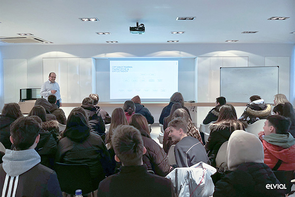 Οι μαθητές ενημερώθηκαν για την εταιρεία, για όλα τα μέτρα ασφαλείας τα οποία οφείλουν να εφαρμόζονται στο περιβάλλον μιας βιομηχανίας παραγωγής συστημάτων αλουμινίου και πιο συγκεκριμένα της ELVIAL και πληροφορήθηκαν από τη Διεύθυνση Ανθρώπινου Δυναμικού για τις ευκαιρίες απασχόλησης στην εταιρεία καθώς και τα προσόντα που απαιτούνται για μια πετυχημένη επαγγελματική σταδιοδρομία.
