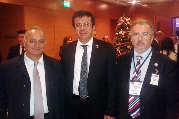 Στο φωτογραφικό στιγμιότυπο ο κ. Τονικίδης εικονίζεται με τον Nihat Zeybekci υπουργό Οικονομικών της Τουρκίας (στο κέντρο) και τον Ferruhn Ozkan αντιπρόεδρο της Ελληνοτουρκικής επιχειρηματικής συνεργασίας.