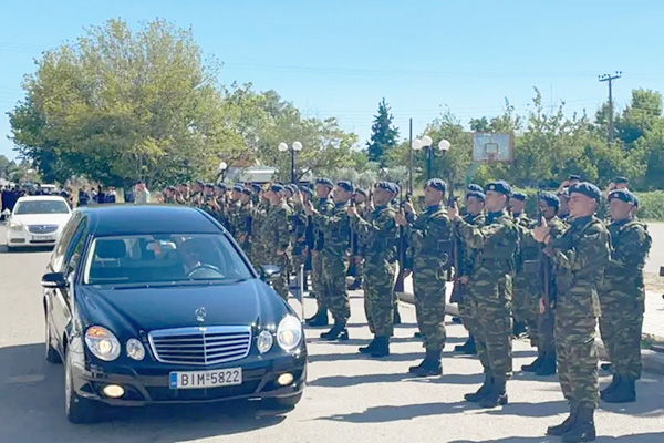 Το φέρετρό του αδικοχαμένου 27χρονου έφτασε στις 4, σκεπασμένο με την γαλανόλευκη ενώ τιμητικό άγημα της Πολεμική Αεροπορίας του απέδωσε τιμές.