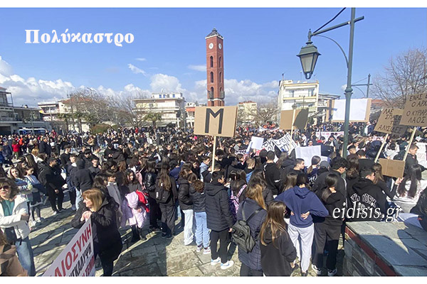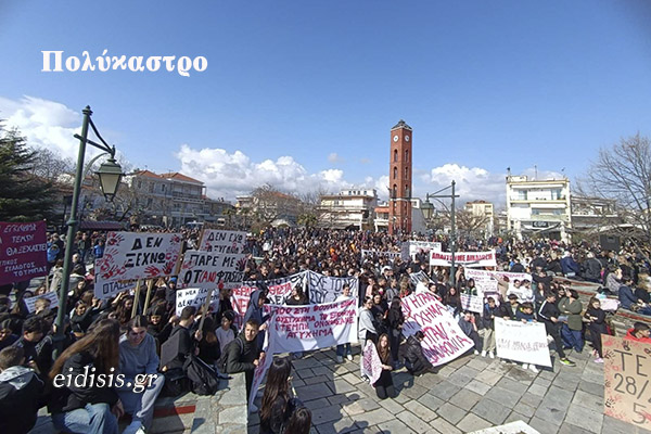 Ανάλογη εικόνα και στις άλλες πόλεις του νομού. Στο Πολύκαστρο η κεντρική πλατεία με το ρολόι γέμισε ασφυκτικά, το ίδιο και η κεντρική πλατεία με τα πλατάνια της Γουμένισσας. Οικογένειες, μικρά και μεγάλα παιδιά, νέοι, παπούδες και γιαγιάδες, πατεράδες και μανάδες ξεχύθηκαν στους δρόμους με ένα αίτημα: Φτάνει πια η ατιμωρησία. Δικαιοσύνη τώρα.