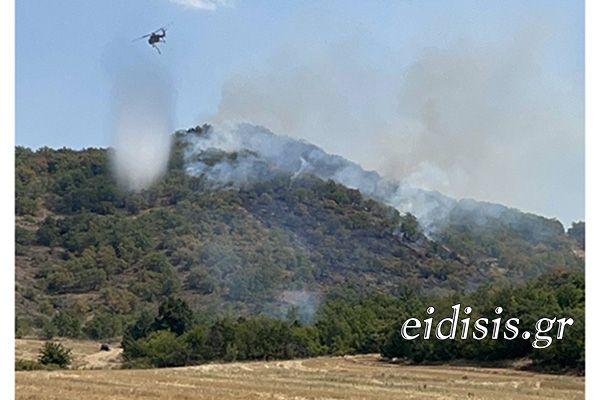 Την Πέμπτη, όπως κάθε μέρα, πυροσβεστικά αεροπλάνα επιχείρησαν ρίψεις νερού για να περιορίσουν την φωτιά που μαίνεται σε δύσβατο έδαφος δασωμένων λόφων και μάλιστα κατευθύνεται προς την πλευρά του ν. Σερρών.