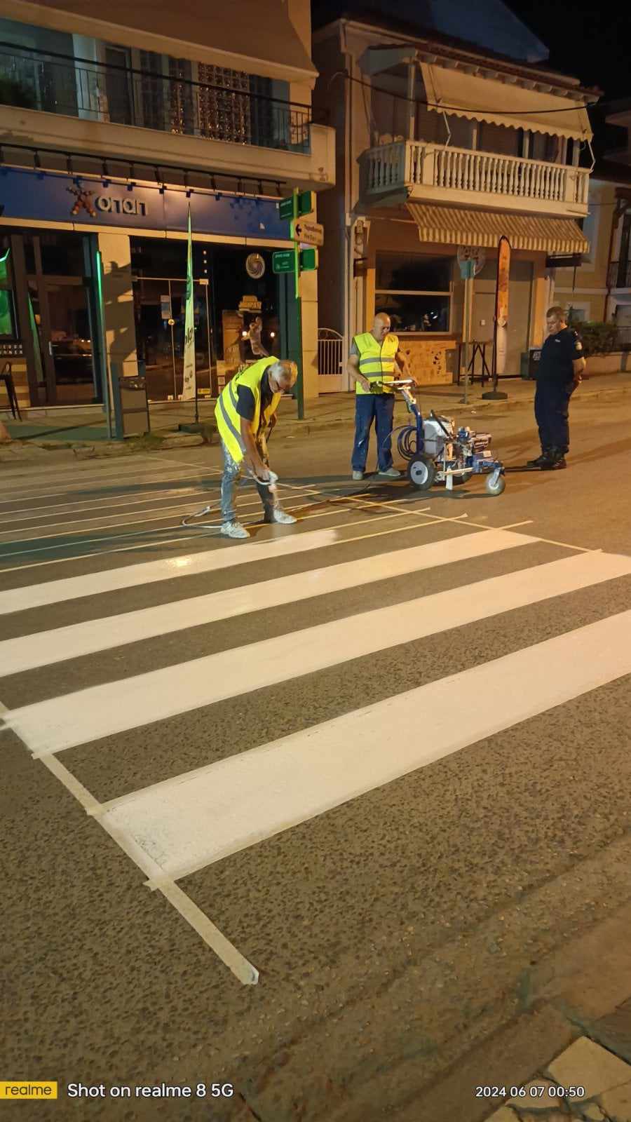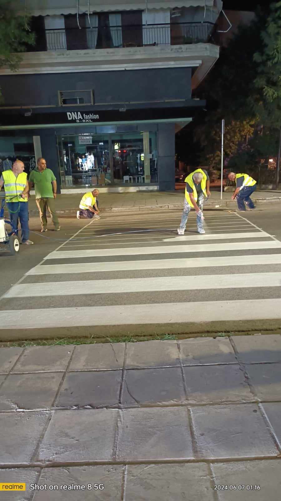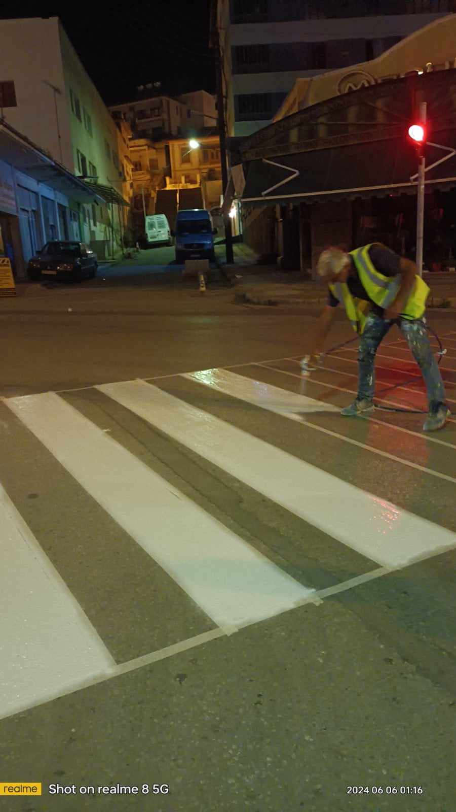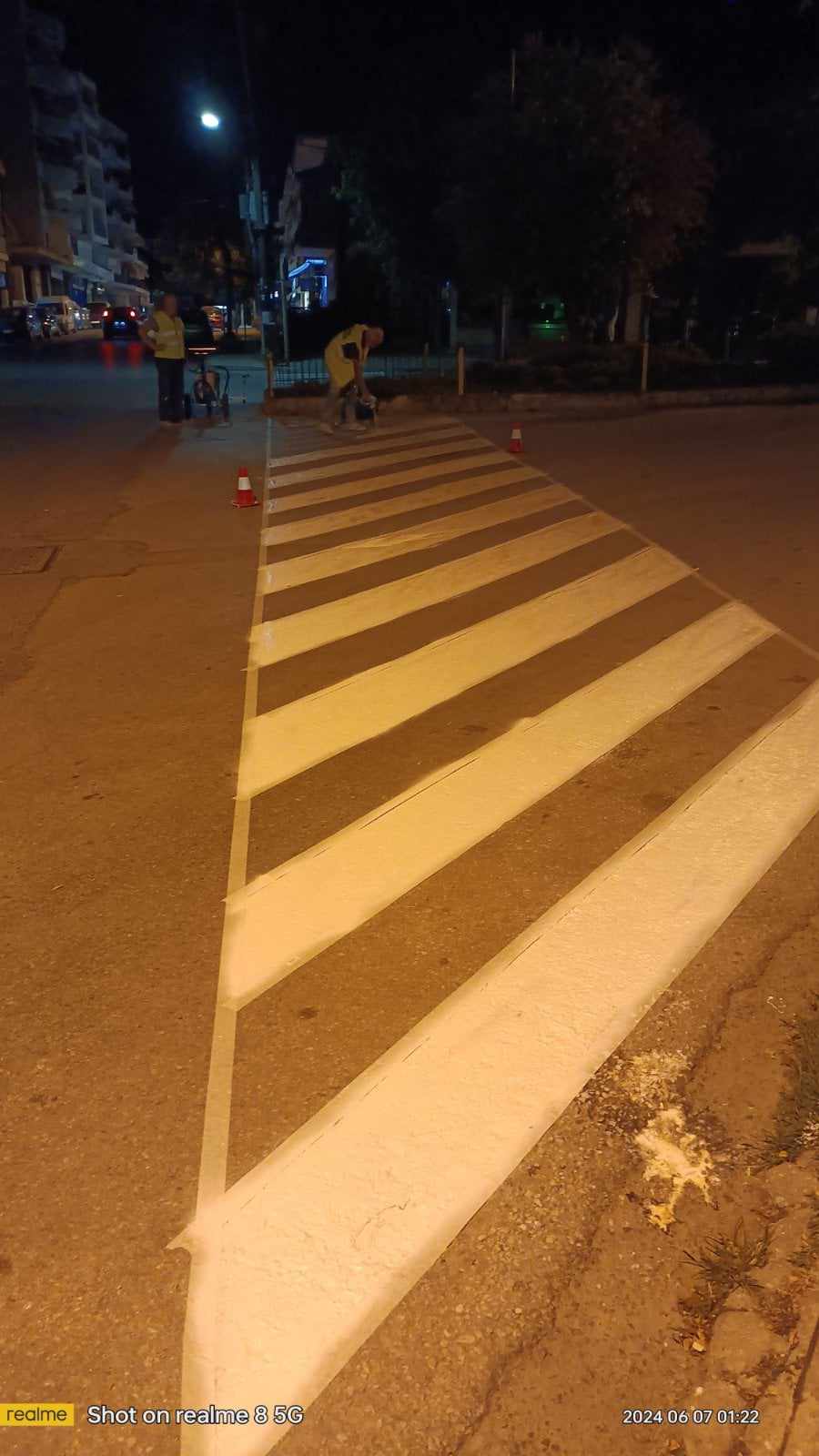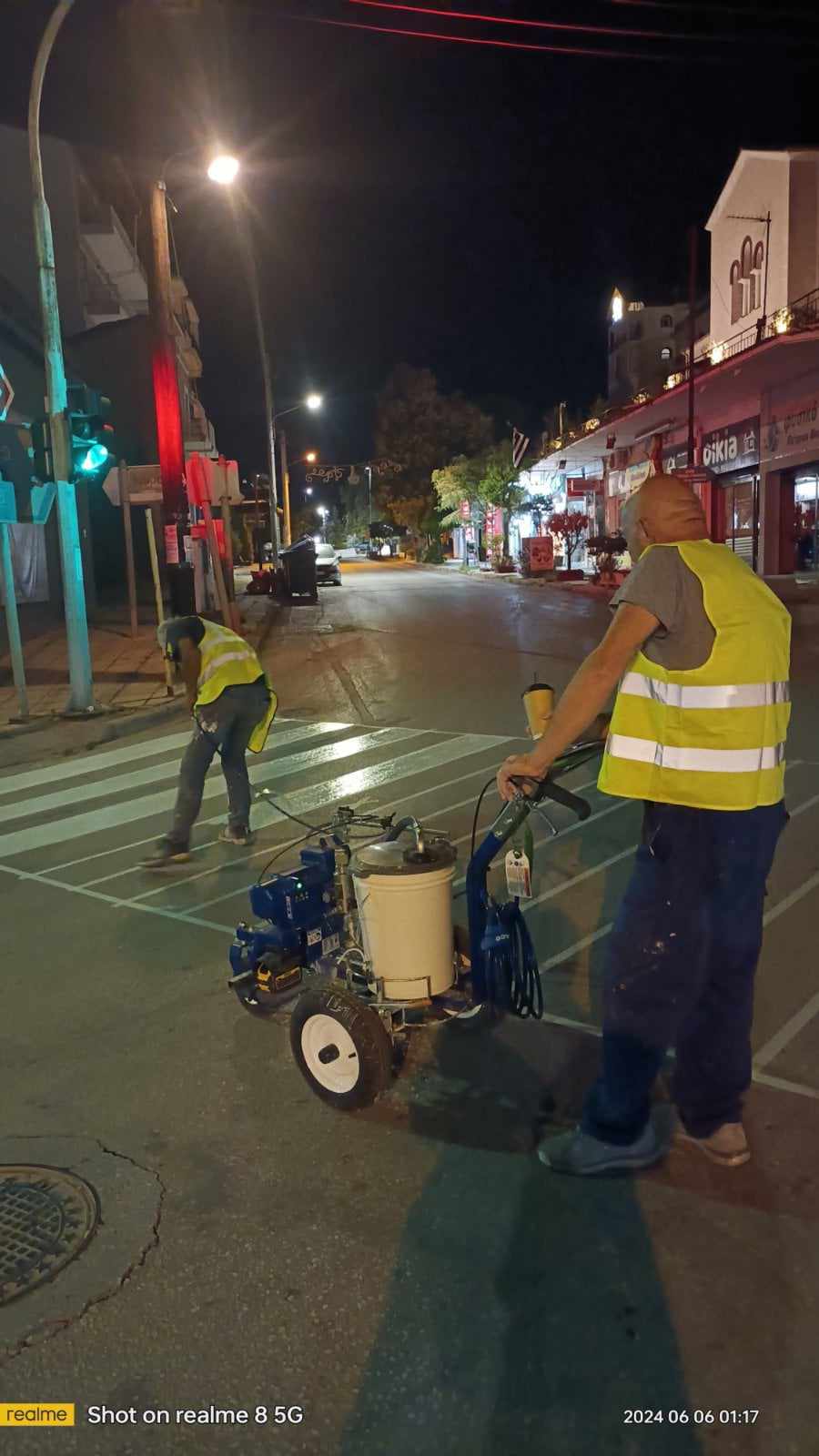 Οι εργασίες θα συνεχιστούν στις οδούς Θεσσαλονίκης, Γ. Καπέτα και Βενιζέλου και θα επαναληφθούν σε δρόμους σχολείων όπου τα χρώματά τους ξεθώριασαν.