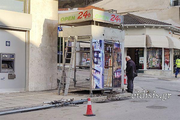 Το πρωί της Παρασκευής 17 Νοέμβρη ξηλώθηκε το περίπτερο μπροστά στην ALPHA BANK και πλέον απομένει το ξήλωμα του μοναδικού περιπτέρου που λειτουργεί στο κέντρο, αυτό που βρίσκεται μπροστά στο κατάστημα της πρώην Εμπορικής Τράπεζας.