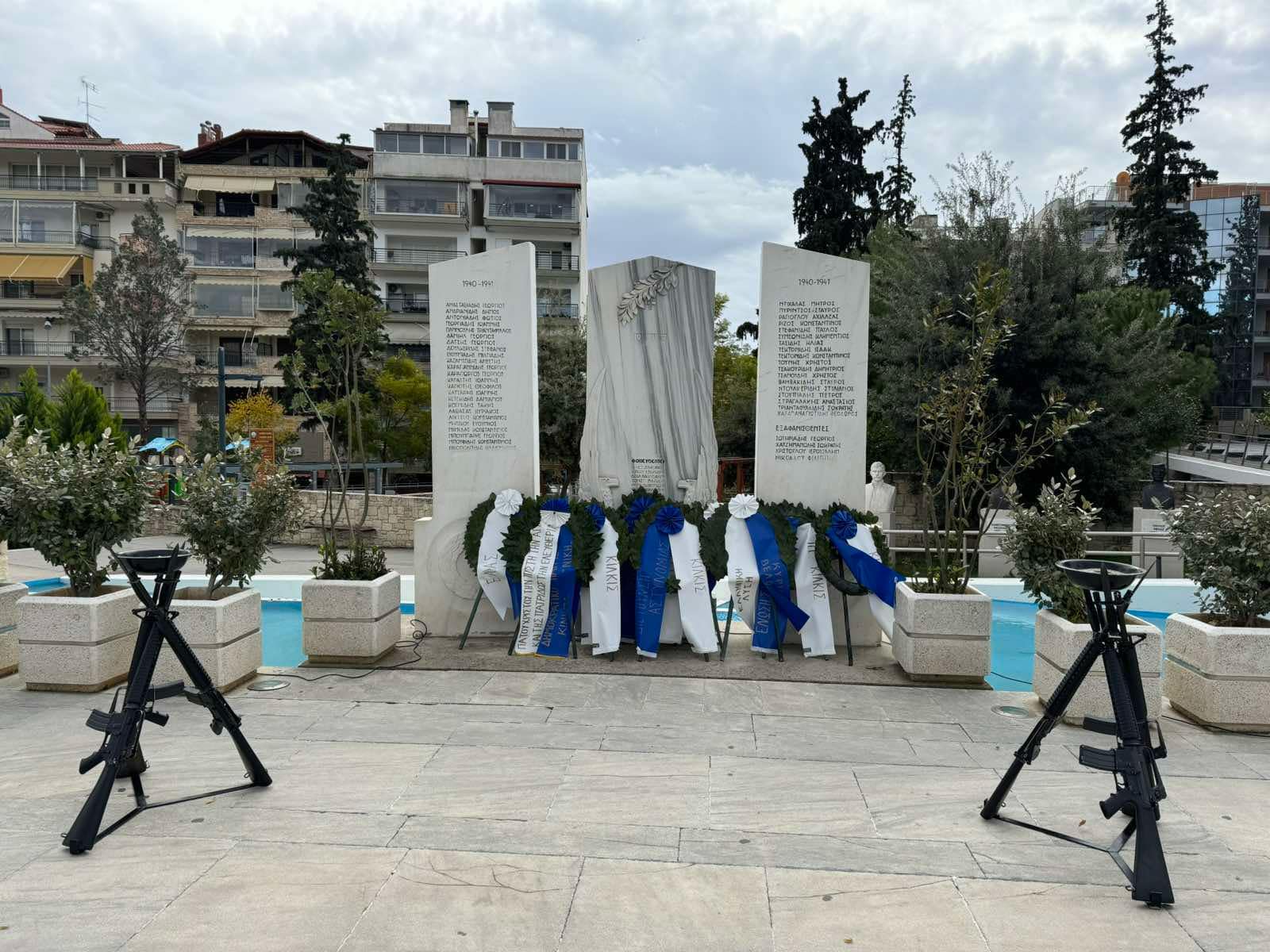 Στεφάνια κατέθεσαν ο Ανώτερος Διοικητής Φρουράς Νέας Σάντας - Κιλκίς Ταξίαρχος Χαράλαμπος Στραβοπόδης, ο Αντιπεριφερειάρχης Κιλκίς, Ανδρέας Βεργίδης, για τον Δήμο Κιλκίς ο Αντιδήμαρχος Παιδικής Μέριμνας Δημήτρης Θεοδωρίδης, η Αστυνομικός Διευθυντής Κιλκίς, Κυριακή Μαγνήσαλη, για τις Πυροσβεστικές Υπηρεσίες Νομού Κιλκίς ο υποπυραγός Δημήτρης Ζαγναφέρης, ο Πρόεδρος της Ένωσης Αποστράτων Αξιωματικών Στρατού Υποστράτηγος ε.α. Σπυρίδων Τσερτσίδης, ο πρόεδρος της Ένωσης Στρατιωτικών Περιφερειακής Ενότητας Κιλκίς, ανθυπασπιστής Πεζικού Ιωάννης Σφήνας, ο πρόεδρος της ΔΕΕΠ ΝΔ ν. Κιλκίς Μηνάς Παπαδόπουλος, ο εκπρόσωπος της «ΕΛΛΗΝΙΚΗ ΛΥΣΗ» Κιλκίς, Βλάσσιος Κουρτίδης και ο εκπρόσωπος της «ΝΙΚΗ» Κιλκίς, Ιωάννης Κεμετσετζίδης.