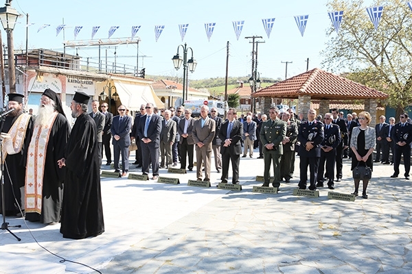 Εν συνεχεία πραγματοποιήθηκε η καθιερωμένη Τελετή στο Ηρώον του χωριού με επιμνημόσυνη δέηση, εκφώνηση του πανηγυρικού της ημέρας, προσκλητήριο νεκρών, κατάθεση στεφάνων, τήρηση σιγής ενός λεπτού και ανάκρουση του εθνικού ύμνου.