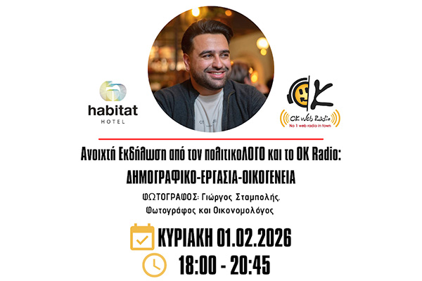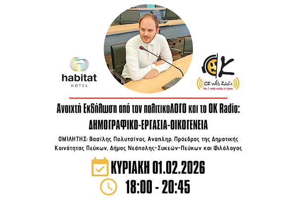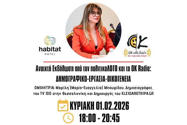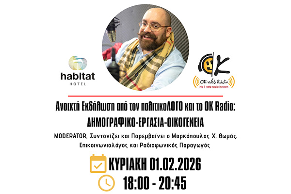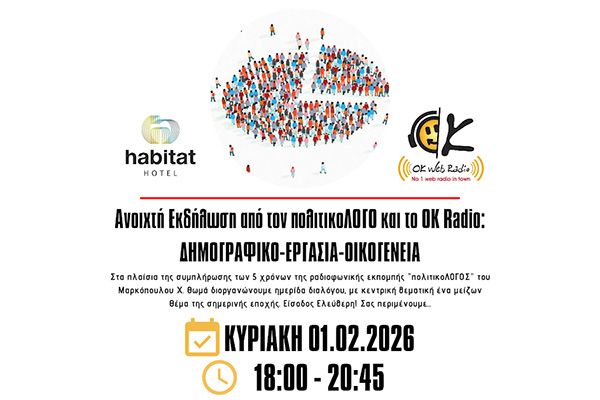 Από τον ''πολιτικοΛΟΓΟ'' και το OK Radio, στα πλαίσια των ''γενεθλίων'' των 5 χρόνων της ραδιοφωνικής εκπομπής ''ΠΟΛΙΤΙΚΟΛΟΓΟΣ'' από τον κο. Μαρκόπουλο Χ. Θωμά. Από την αρχή και κατά την διάρκεια της Εκδήλωσης μας, καθώς και στο διάλλειμα φυσικά, θα υπάρχουν: καφές, τσάι, χυμός, κεράσματα, καθώς και ''βασιλοπιτάκια'' για τις φίλες και τους φίλους μας. Είσοδος Ελεύθερη! Σας περιμένουμε όλες και όλους...