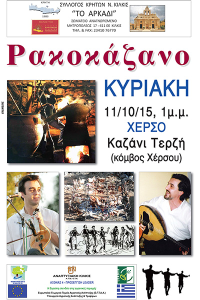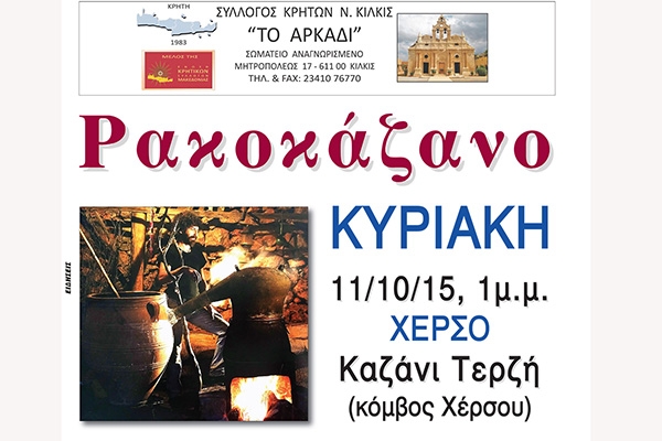 Ο Σύλλογος Κρητών ν. Κιλκίς "ΤΟ ΑΡΚΑΔΙ" οργανώνει την Κυριακή 11 Οκτωβρίου το ΡΑΚΟΚΑΖΑΝΟ και προσκαλούν όλους για ένα ατέλειωτο και υπέροχο κρητικό γλέντι.