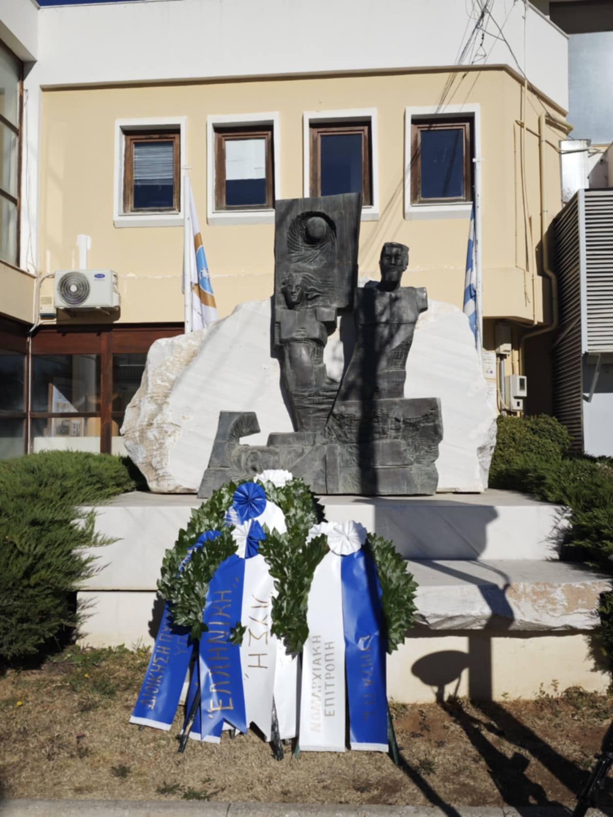 Ακολούθως τελέστηκε επιμνημόσυνη δέηση και κατάθεση στεφάνων στο Μνημείο της Εθνικής Αντίστασης, τηρήθηκε σιγή ενός λεπτού και η εκδήλωση ολοκληρώθηκε με την ανάκρουση του Εθνικού Ύμνου.