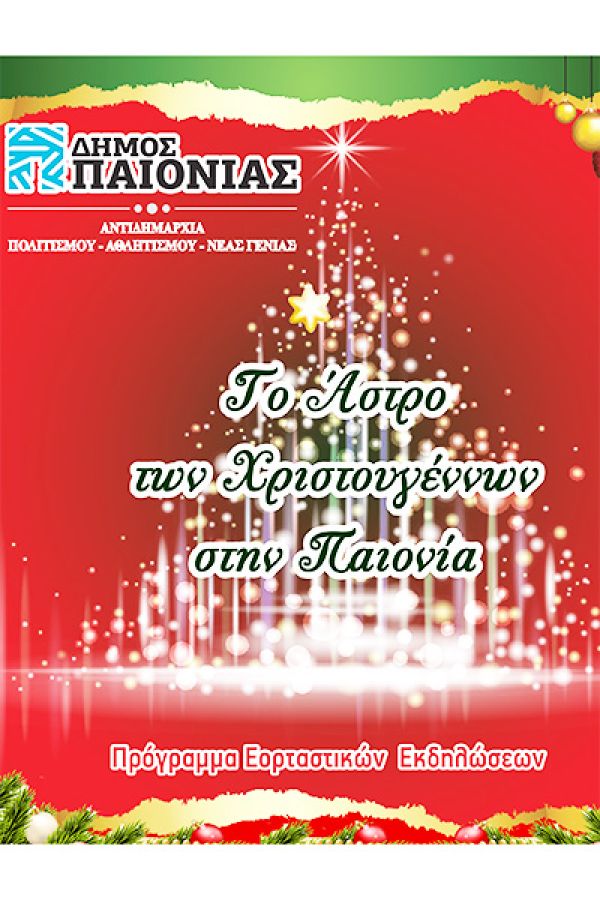 17:30 ΑΓΙΟΣ ΠΕΤΡΟΣ - ΠΛΑΤΕΙΑ: Φωταγώγηση Χριστουγεννιάτικου Δέντρου με τη συνοδεία της Φιλαρμονικής του Δήμου Παιονίας. Συμμετέχει το παιδικό τμήμα μοντέρνου χορού και η Χορωδία του