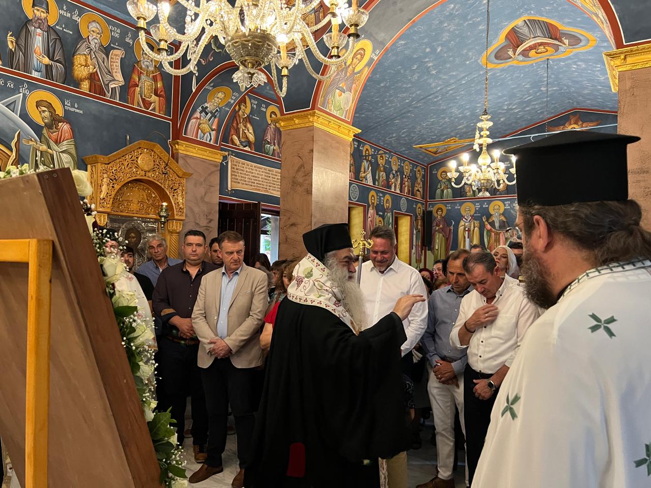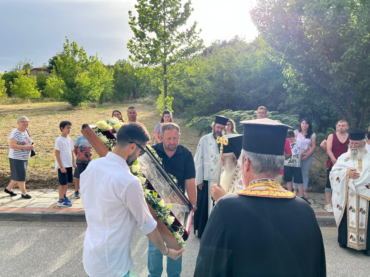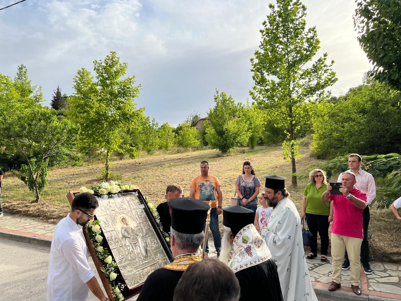 Η υποδοχή της Εικόνος πραγματοποιήθηκε στα προπύλαια του εξωκλησιου από τον Σεβασμιώτατο Μητροπολίτη μας κ. Δημήτριο, και σύσσωμο τον Ιερό Κλήρο της ευρύτερης περιοχής της Παιονίας και των γειτονικών ενοριών και χωριών