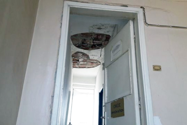 Πέρσι στην ίδια πτέρυγα έπεσε μεγάλο κομμάτι σοβά σε θάλαμο κλινικής. Επίσης στην ίδια πτέρυγα στεγάζονται κοιτώνες ιατρών όπου υπάρχει εκτεταμένη αποκόλληση και πτώση σοβάδων».