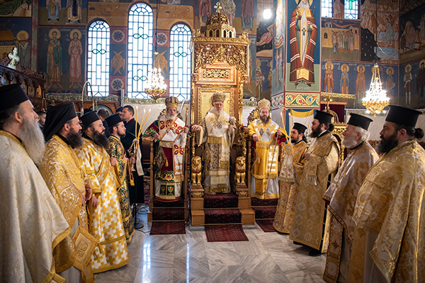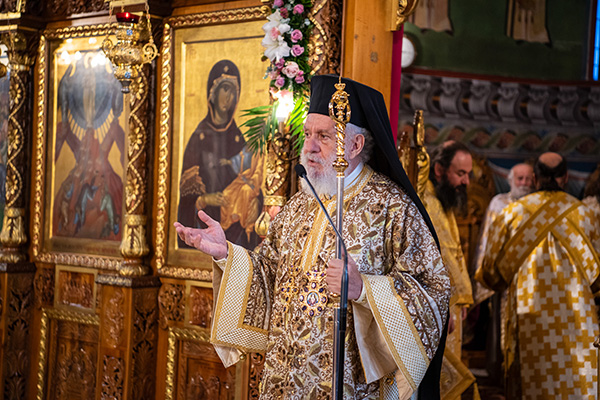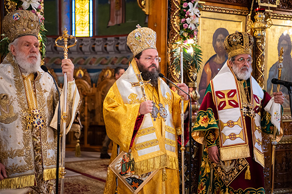 Του Όρθρου χοροστάτησε ο Σεβασμιώτατος Μητροπολίτης Σιδηροκάστρου κ. Μακάριος ενώ της Θείας Λειτουργίας προεξήρχε ο Σεβασμιώτατος Μητροπολίτης Σύρου κ. Δωρόθεος, συλλειτουργούντων του Σεβ. κ. Μακαρίου και του οικείου Ιεράρχου, Μητροπολίτου Πολυανής και Κιλκισίου κ. Βαρθολομαίου.