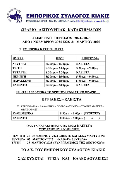 ΟΛΑ ΤΑ ΚΑΤΑΣΤΗΜΑΤΑ ΘΑ ΕΙΝΑΙ ΚΛΕΙΣΤΑ ΣΤΙΣ ΕΞΗΣ ΗΜΕΡΟΜΗΝΙΕΣ: