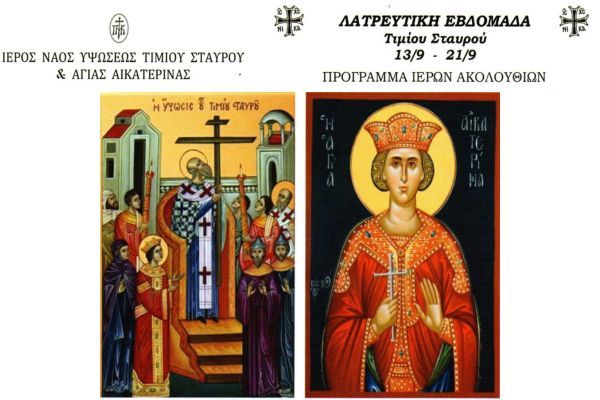 Το πρόγραμμα της Λατρευτικής Εβδομάδας, που ξεκινά την Παρασκευή 13 Σεπτεμβρίου με την υποδοχή του Τιμίου Ξύλου, περιλαμβάνει ακολουθίες, καθ' όλη τη διάρκεια της ημέρας, και ομιλίες με εξαίρετους ομιλητές πατέρες της Εκκλησίας μας με κεντρικό θέμα: "Η εορτή της Μεταμορφώσεως και ο Σταυρός".