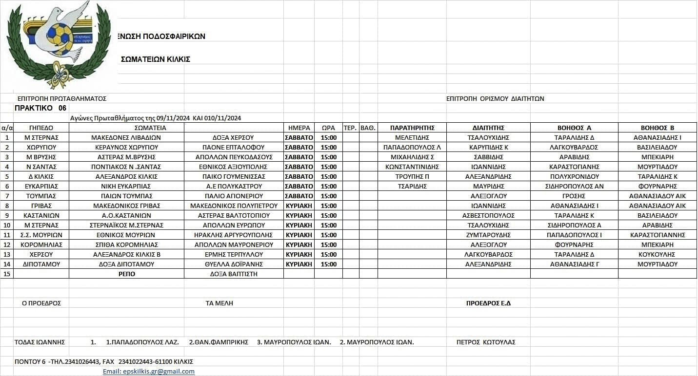 Αγώνες της ΕΠΣ Κιλκίς στις 9 & 10/11/2024, οι παρατηρητές και οι διαιτητές που θα διευθύνουν