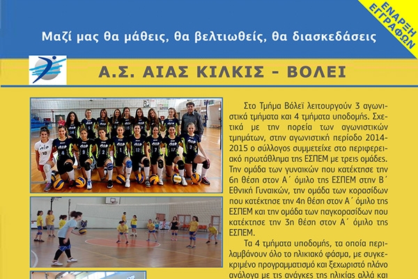 Εγγραφές στον ΑΙΑΝΤΑ ΚΙΛΚΙΣ