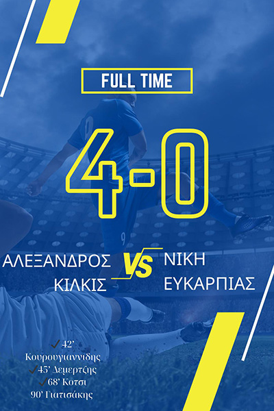 Την πρώτη του νίκη στο πρωτάθλημα πανηγύρισε ο Αλέξανδρος Κιλκίς καθώς επικράτησε με 4-0 της Νίκης Ευκαρπίας για την δεύτερη αγωνιστική της ΕΠΣ Κιλκίς. Πολύ καλή εμφάνιση για τον Αλέξανδρο, ο οποίος και πάλι έδωσε τη δυνατότητα να αγωνιστούν στο τελευταίο κομμάτι του αγώνα αρκετοί ποδοσφαιριστές κάτω των 18 ετών, οι οποίοι είχαν και εξαιρετική απόδοση.