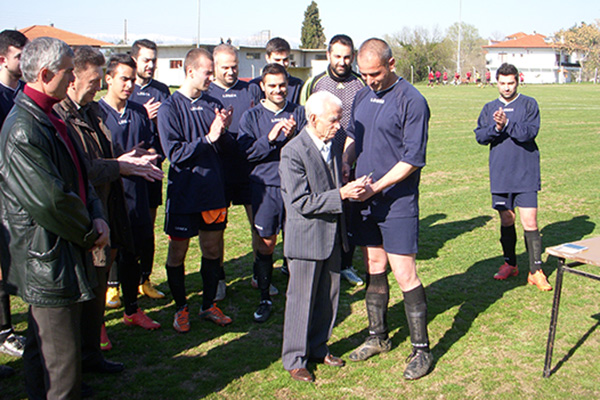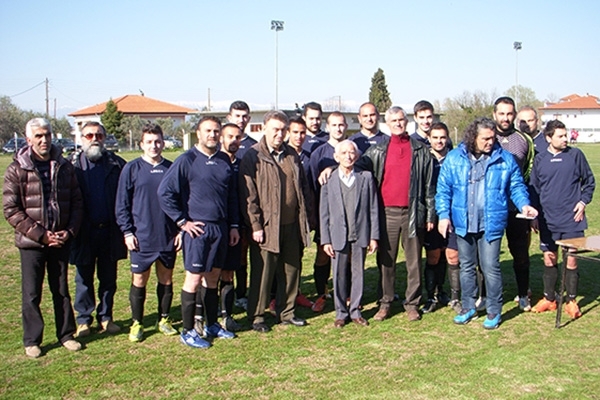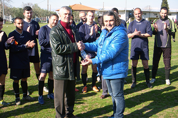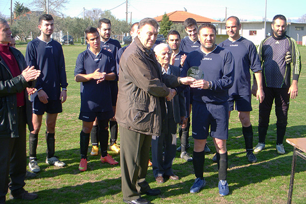 Ο πρόεδρος της ομάδας Σίμος Παντελίδης και ποδοσφαιριστές παρέδωσαν τις τιμητικές πλακέτες σε τρεις ανθρώπους του χωριού για τη μεγάλη προσφορά τους στο σύλλογο: