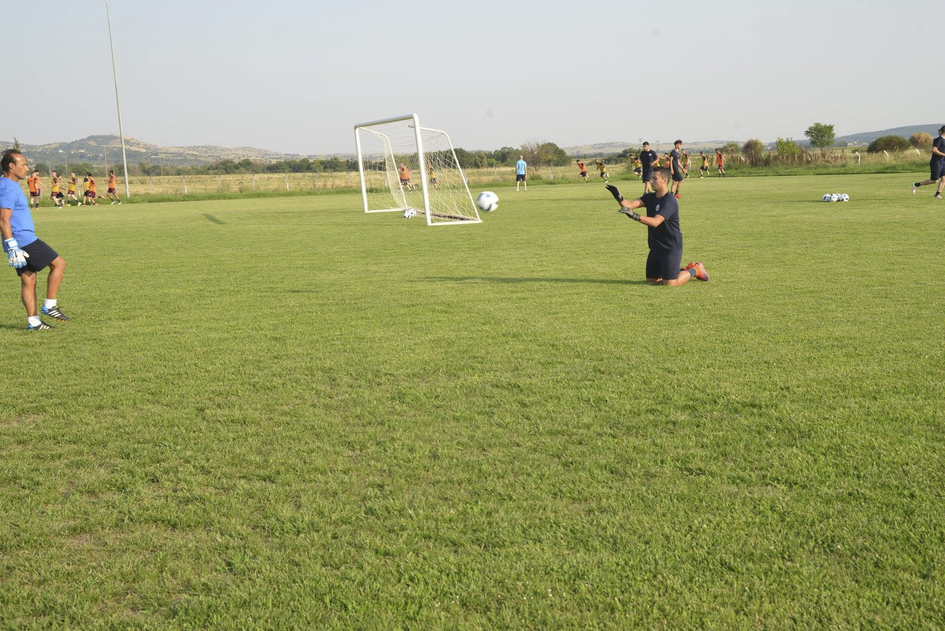 Ακολούθησε αρκετό τρέξιμο στο γήπεδο, παιχνίδια με τη μπάλα, με τους παίκτες να χωρίζονται σε τρία γκρουπ που έδωσαν από δύο ημίχρονα στο μισό γήπεδο των δώδεκα λεπτών.
