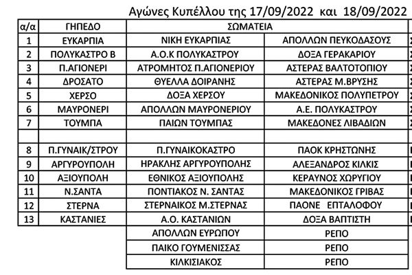 Με 13 αγώνες αυτό το σαββατοκύριακο η 2η αγωνιστική του Κυπέλλου της ΕΠΣ Κιλκίς