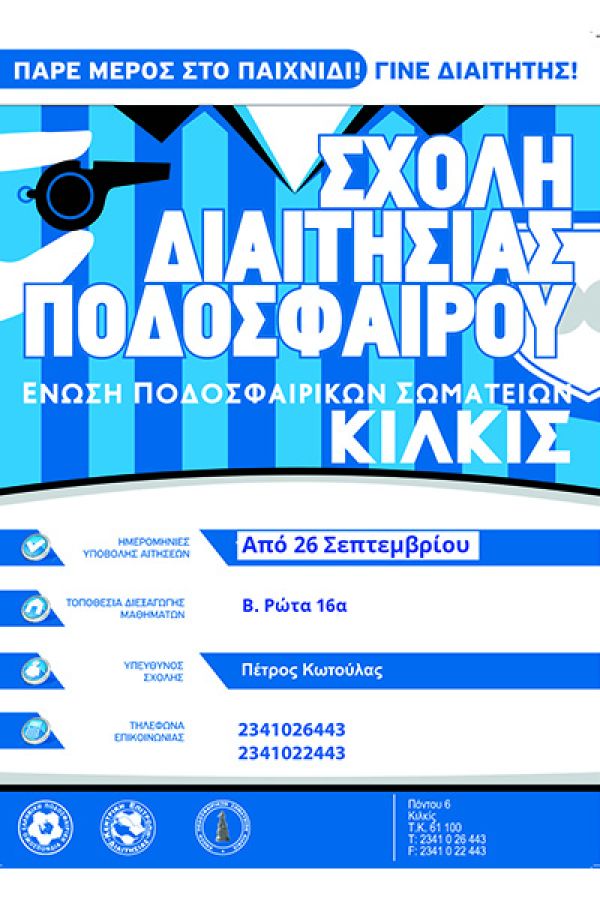 Η Επιτροπή Διαιτησίας της Ε.Π.Σ. Κιλκίς, θα λειτουργήσει σχολή διαιτησίας για την περίοδο 2022-2023.