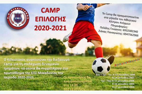 Ο Κιλκισιακός ανακοινώνει την διεξαγωγή Camp για τη στελέχωση δυναμικών τμημάτων, τα οποία θα συμμετέχουν στο πρωτάθλημα της ΕΠΣ Μακεδονίας την περίοδο 2020-2021.