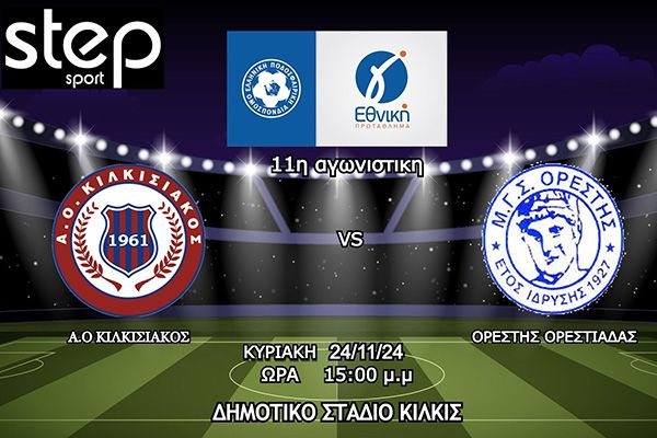 Το ποδοσφαιρικό ενδιαφέρον κορυφώνεται αυτή την Κυριακή, καθώς στις 15:00, στο Δημοτικό Στάδιο Κιλκίς, ο Κιλκισιακός υποδέχεται τον Ορέστη Ορεστιάδας στο πλαίσιο της 11ης αγωνιστικής της Γ' Εθνικής Κατηγορίας.