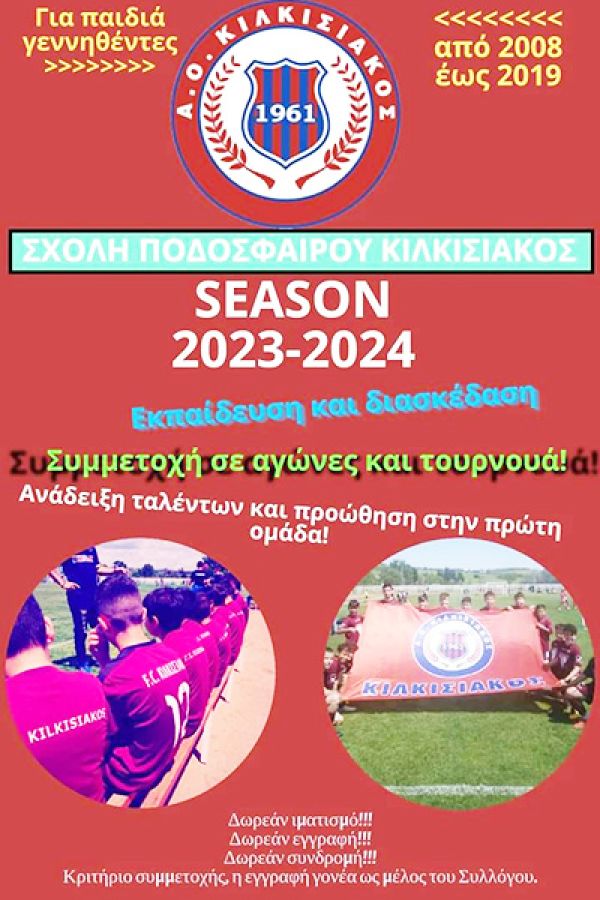 Οι Εγγραφές συνεχίζονται καθημερινά στα τηλέφωνα 6936148023 , 6975611221 ή στο γήπεδο κατά τις ημέρες & ώρες προπονήσεων.