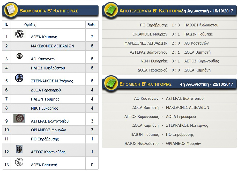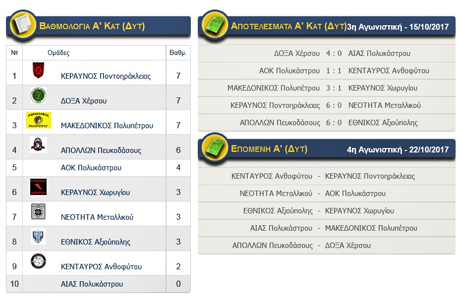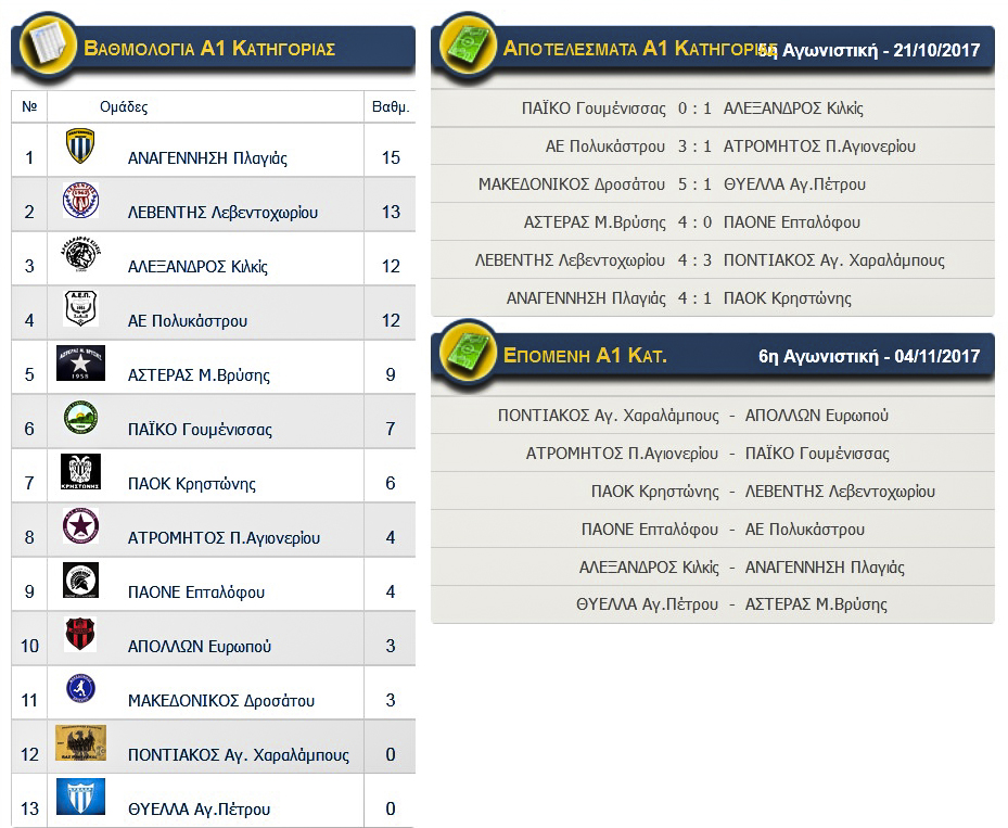 Όλα τα αποτελέσματα των αγώνων της ΕΠΣ Κιλκίς και οι βαθμολογίες