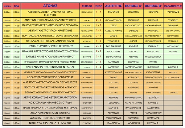 Δείτε όλα τα αποτελέσματα των αγώνων της ΕΠΣ Κιλκίς του Σαββάτου σε όλες τις κατηγορίες, τα ονόματα των διαιτητών και των παρατηρητών των αγώνων.