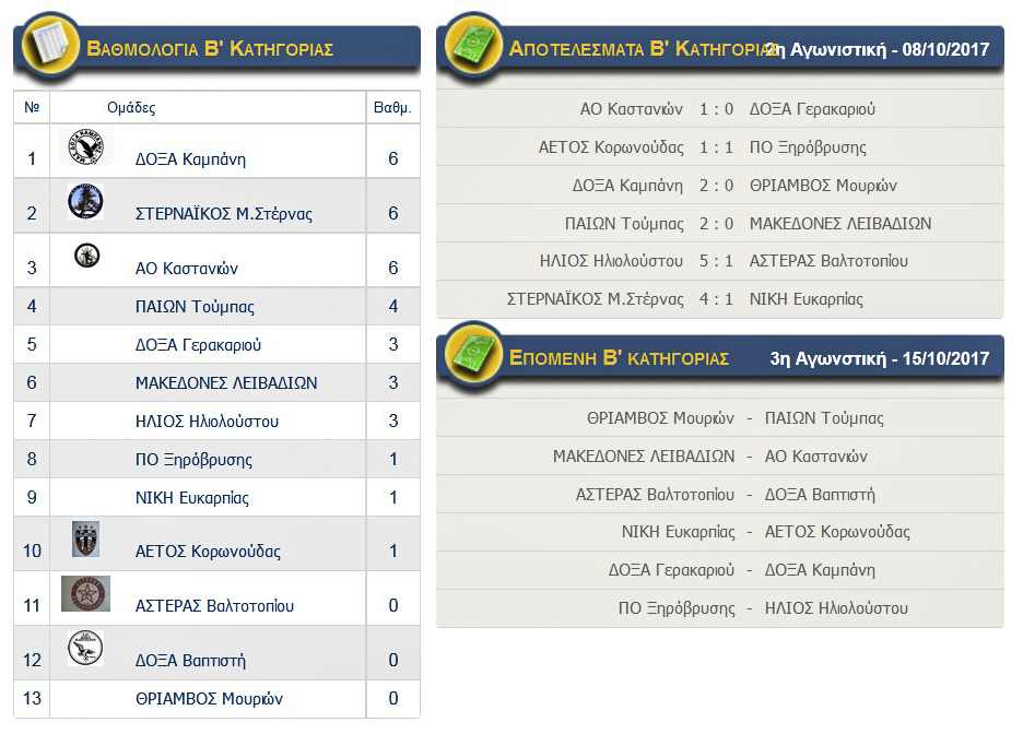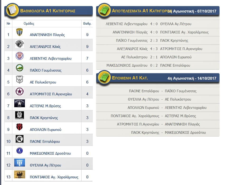 Ολοι τα απολέσματα των αγώνων της ΕΠΣ Κιλκίς και οι βαθμολογίες