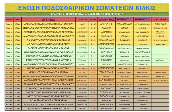 Δείτε όλα τα αποτελέσματα των αγώνων της ΕΠΣ Κιλκίς του περασμένου Σαββατοκύριακου σε όλες τις κατηγορίες, τις βαθμολογίες και τις επόμενες αγωνιστικές, όπως καταγράφονται από τα επίσημα στοιχεία της ΕΠΣ Κιλκίς.