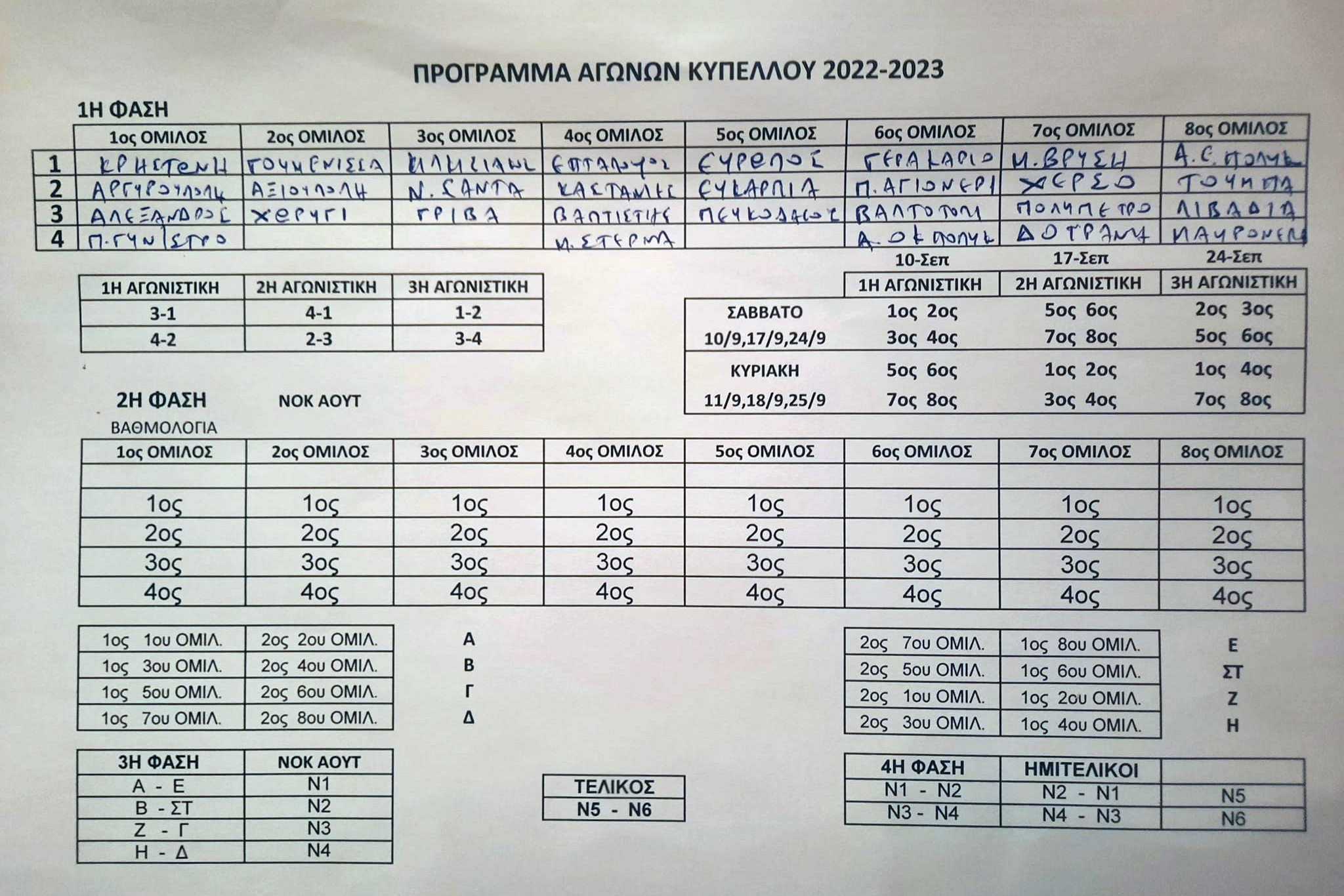 Το πρόγραμμα των αγώνων παρουσιάζεται στον σχετικό πίνακα της κλήρωσης που δημοσιεύουμε.