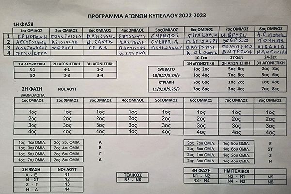 Το πρόγραμμα των αγώνων κυπέλλου της Ε.Π.Σ Κιλκίς για 2022-2023